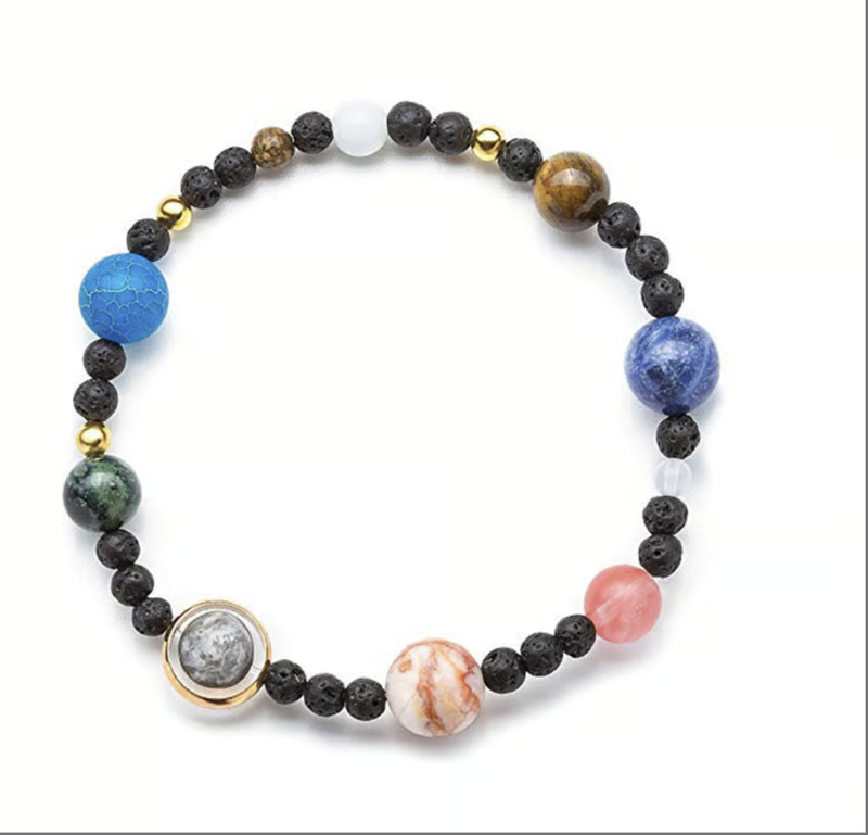 This bracelet contains 9 different colors of stones, corresponding to the 9 planets in the solar system. Your world will be filled with these precious natural stones representing each planet: